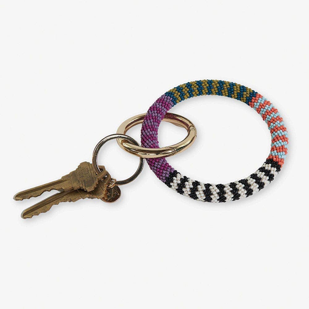 Chloe Stripes Beaded Key Ring Bracelet Two Tone Multicolored