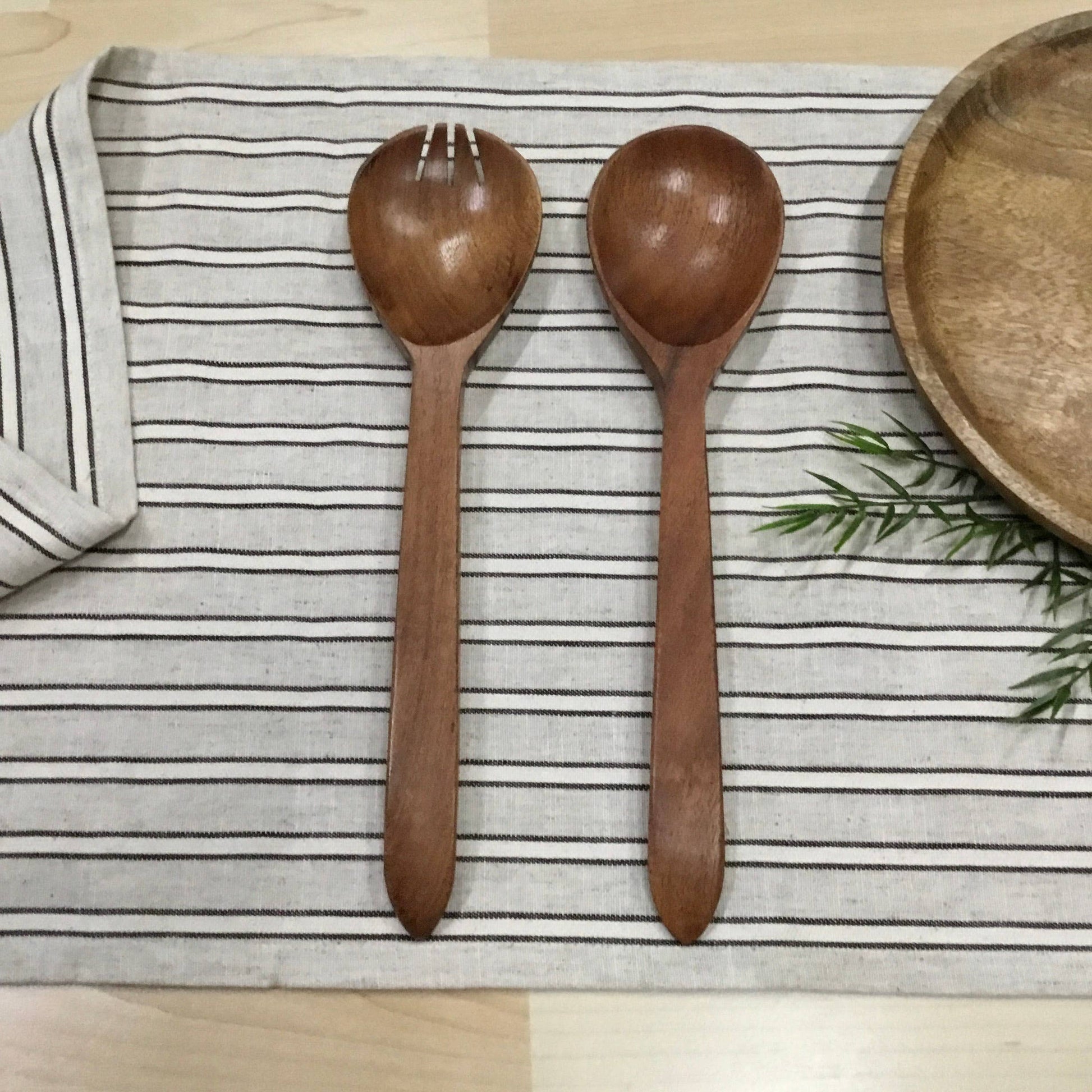The Babul Wood Curved Handle Salad Servers are a must-have addition to your kitchen and dining collection. This set of 2 servers is perfect for serving salads, pasta, and other delicious dishes. Crafted from high-quality babul wood, these servers are not only durable but also add a touch of elegance to your table setting. The curved handles provide a comfortable grip, making it easy to serve your guests with style. Whether you're hosting a dinner party or simply enjoying a meal with your family, these salad servers are the perfect choice. They also make a great wedding or housewarming gift for your loved ones. Elevate your dining experience with the Babul Wood Curved Handle Salad Servers.