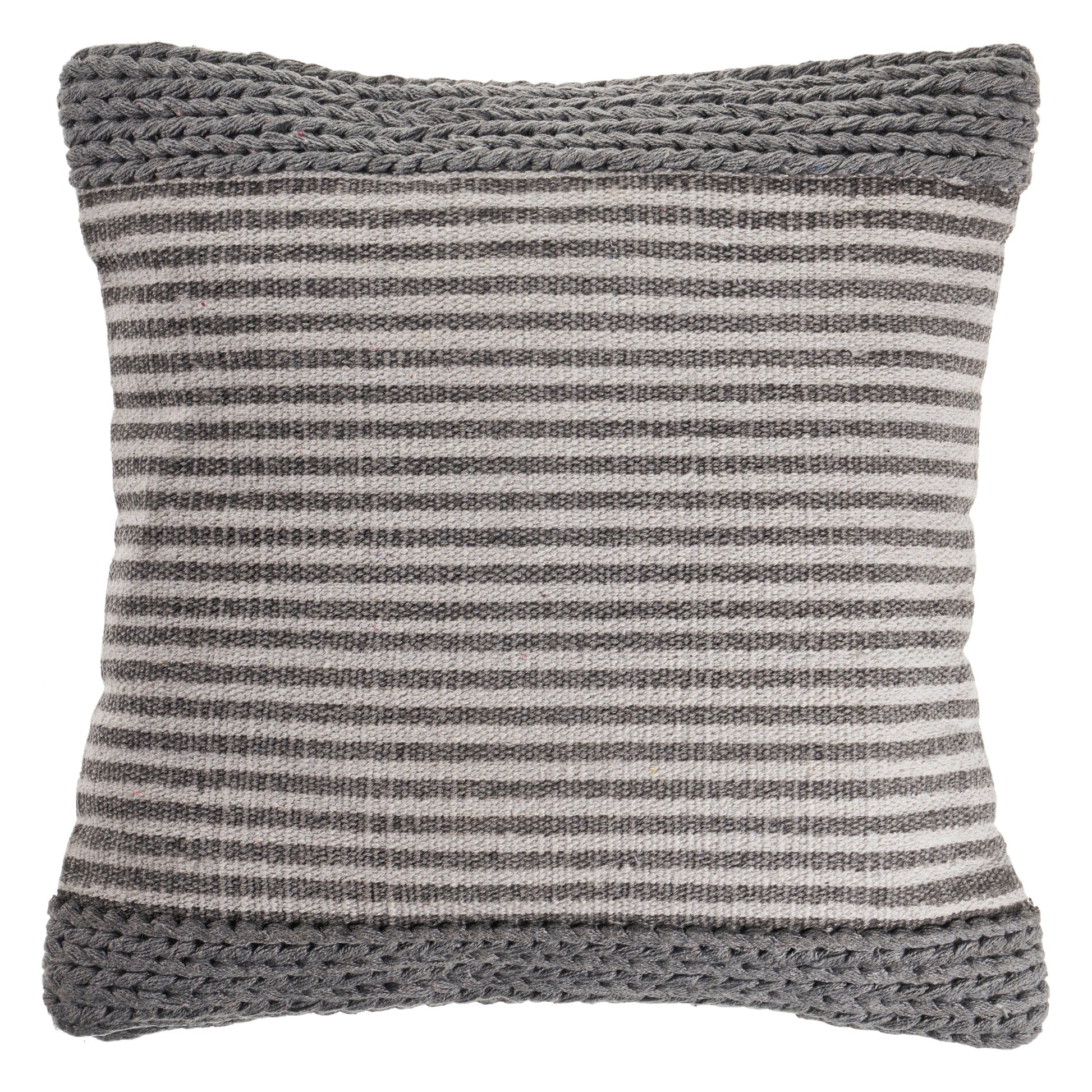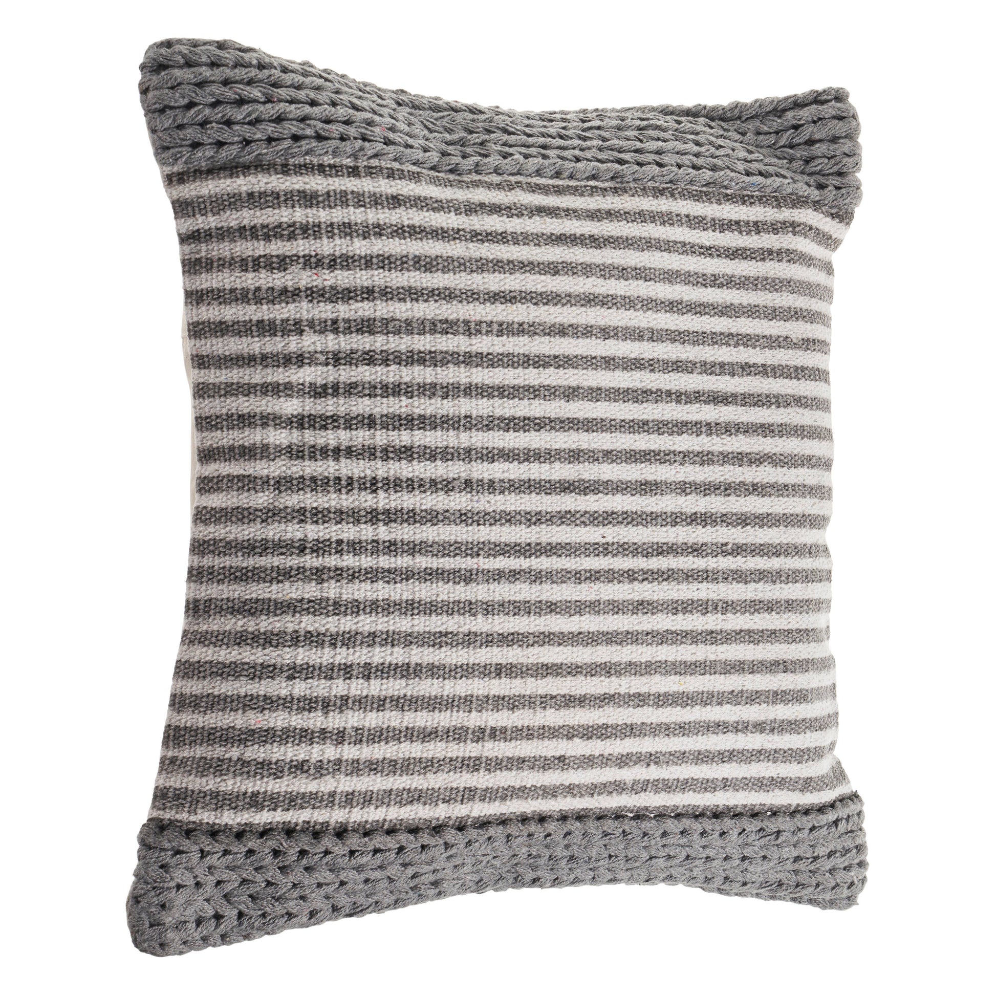 Designed to thrill, our pillow collection will add intricate mastery and eye pleasing designs to any room. Combine wonderful geometric stripes with detailed, woven textures to make an eye-catching centerpiece for your pillow collection. With soft gray and ivory, this piece can be placed within a variety of different style environments. Hand-made with the customer in mind, there is no compromise of comfort and style with the pillow line we create. 90% Cotton 10% Polyester. Handmade Closure: Zipper. Depth: 7.5