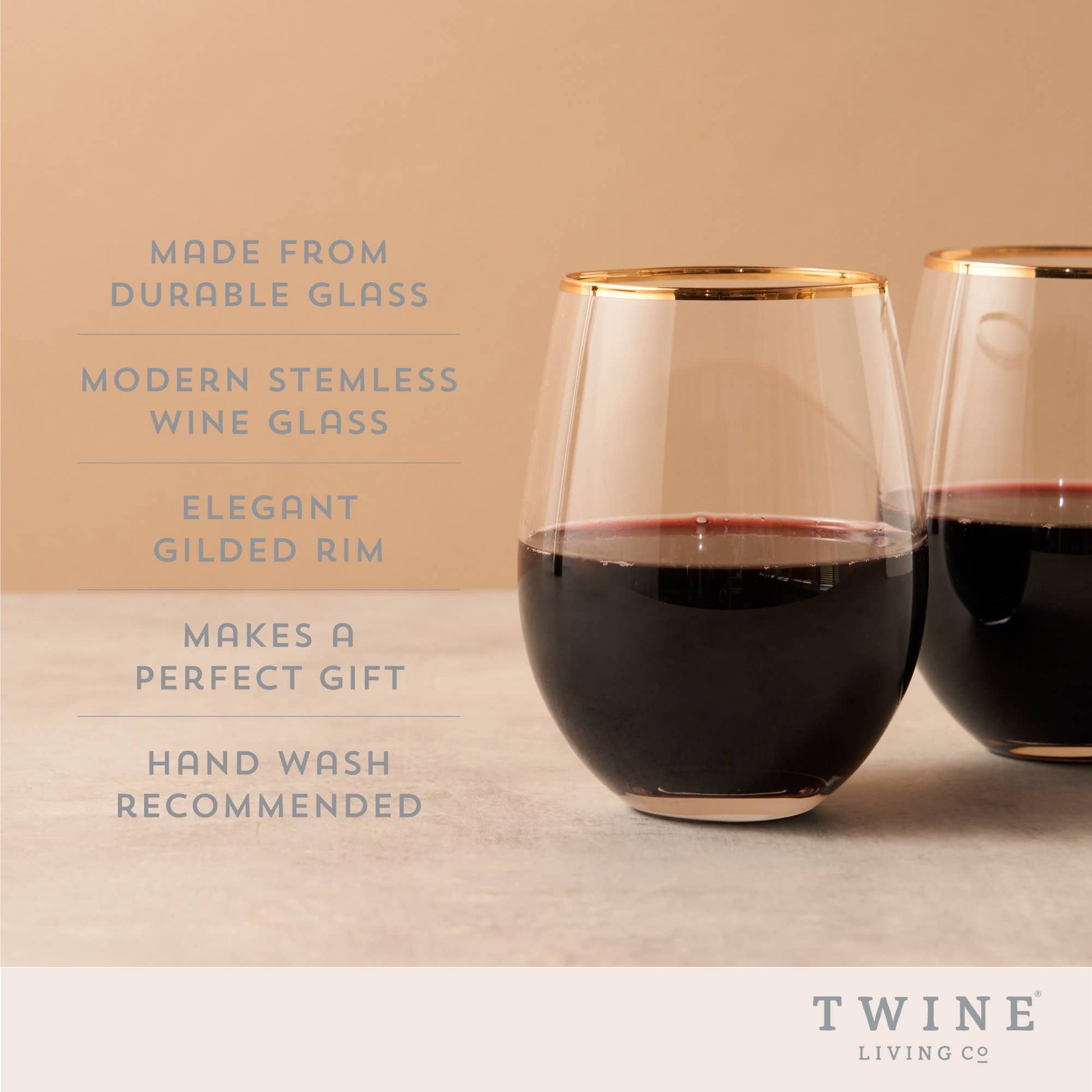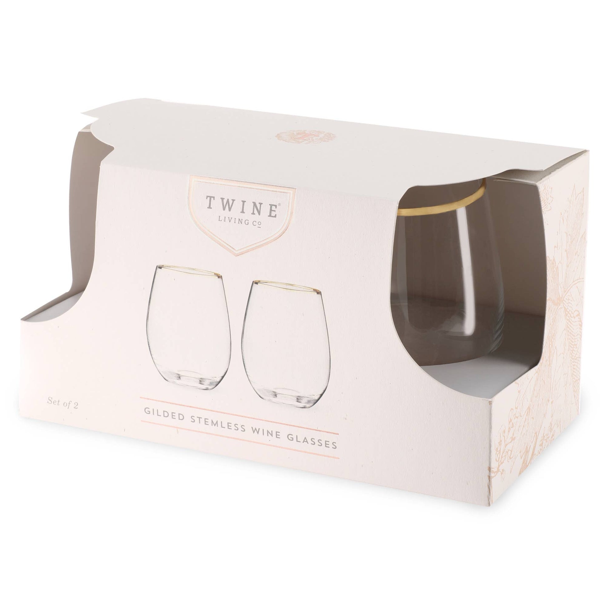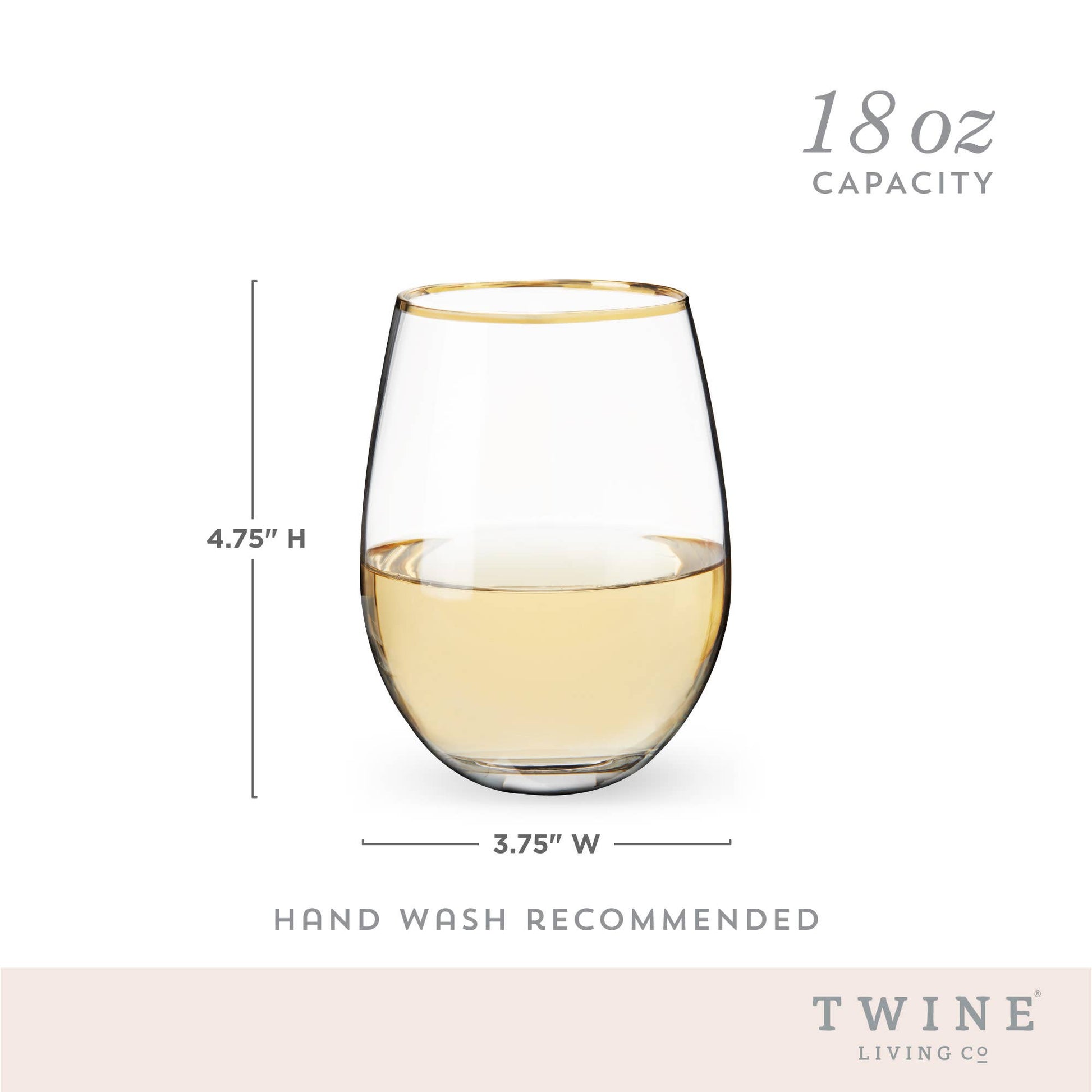 Gild your favorite vintages. With a modern stemless silhouette and dazzling gilded rim, these wine glasses add a subtle glimmer to your table. These wine glasses are perfect for any celebratory occasion or simply a quiet evening glass of wine.
