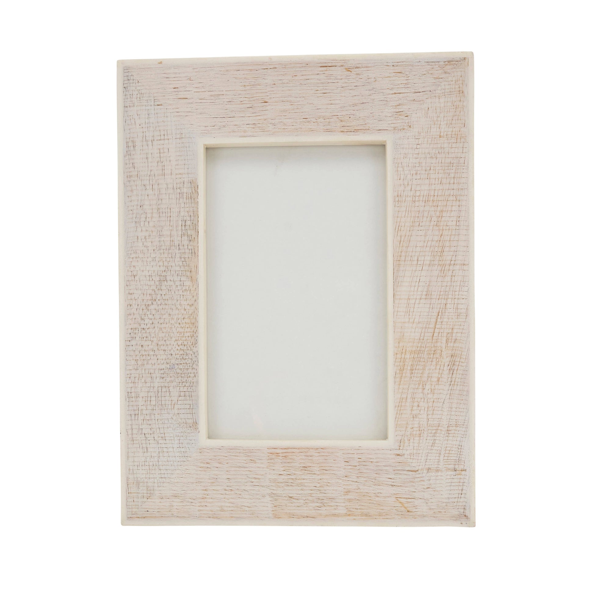 Luxe Cross Hatch Bone + Wood Photo Frame 5x7