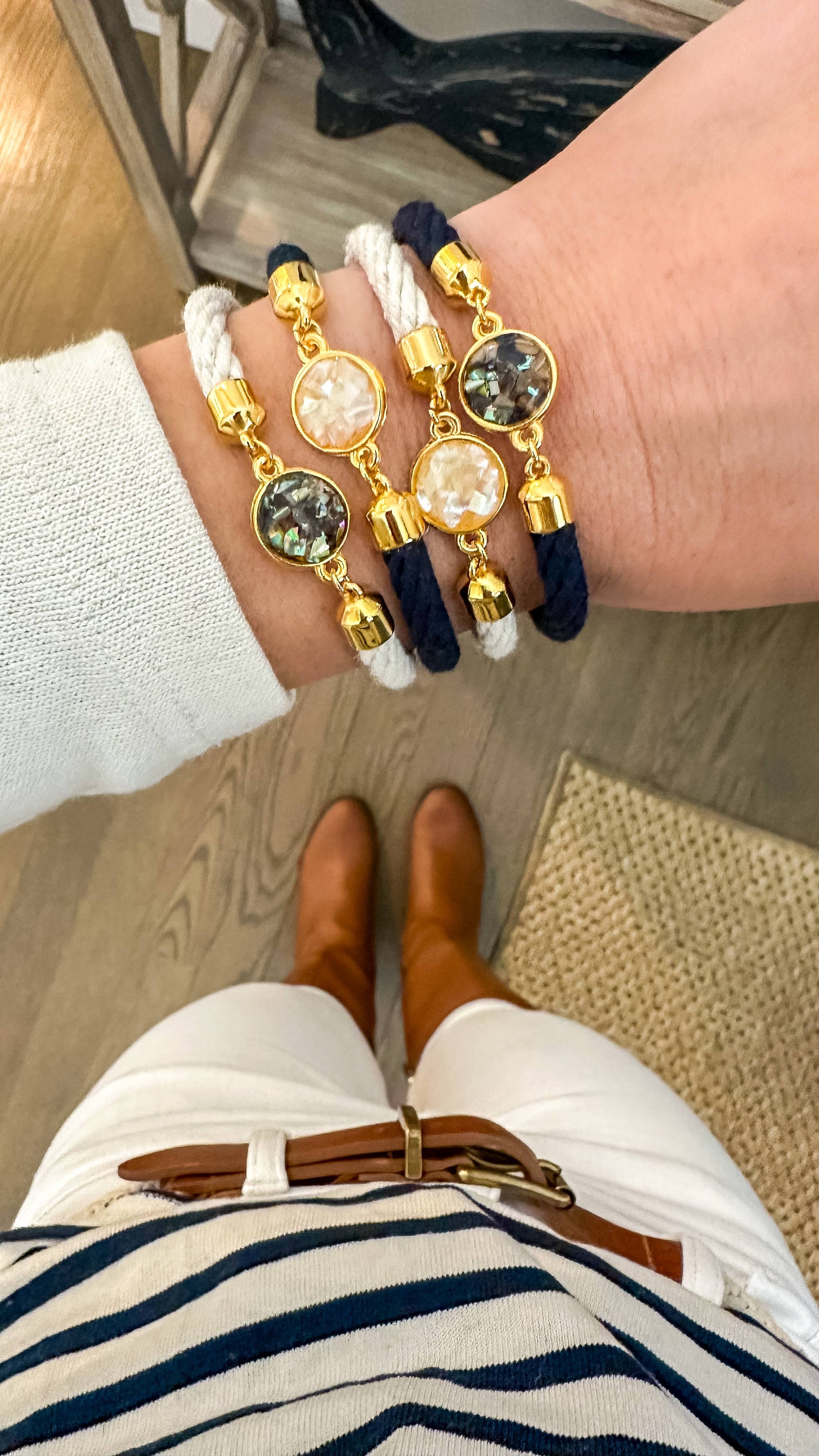Monomoy - Navy/Mother of Pearl/Gold - Shell Bracelet