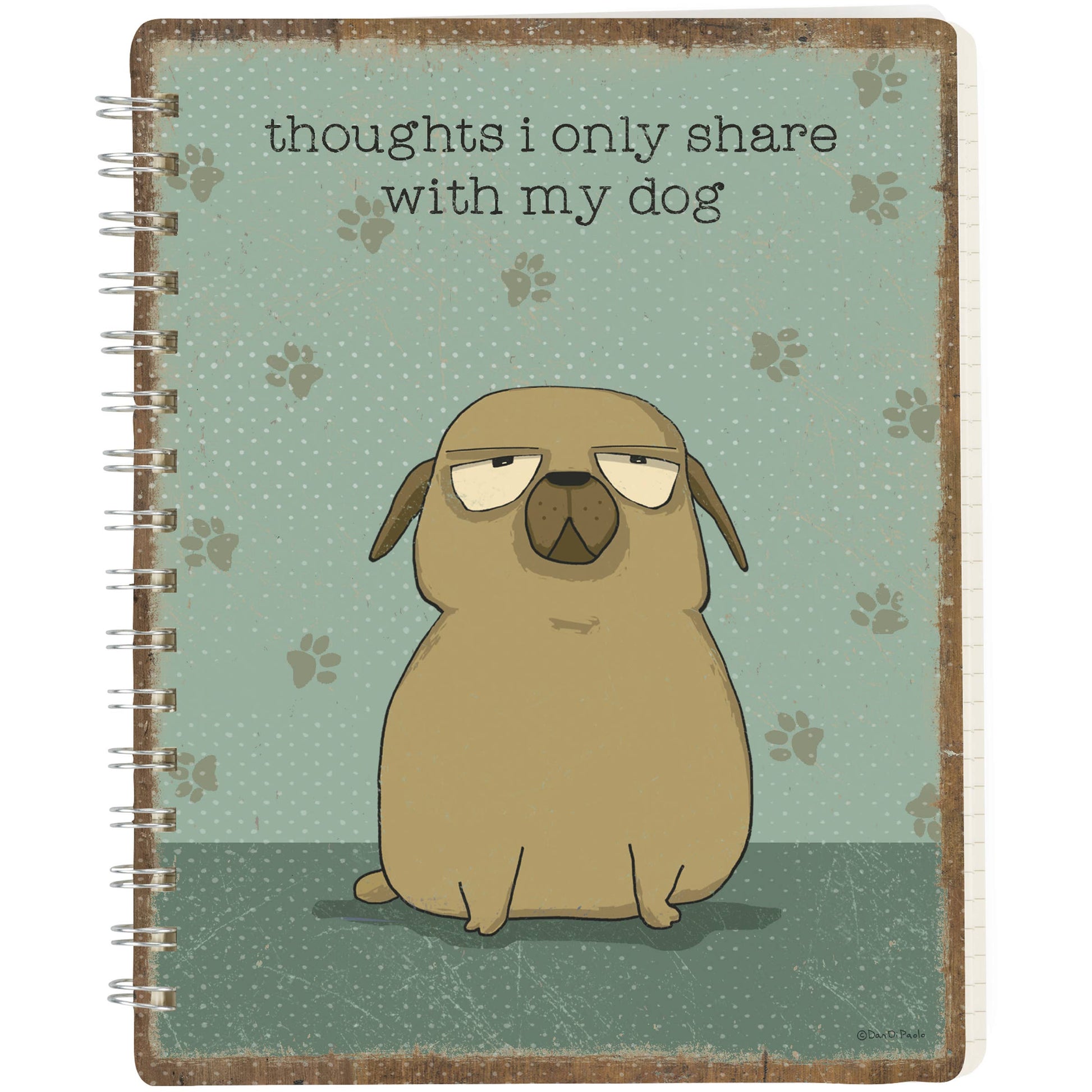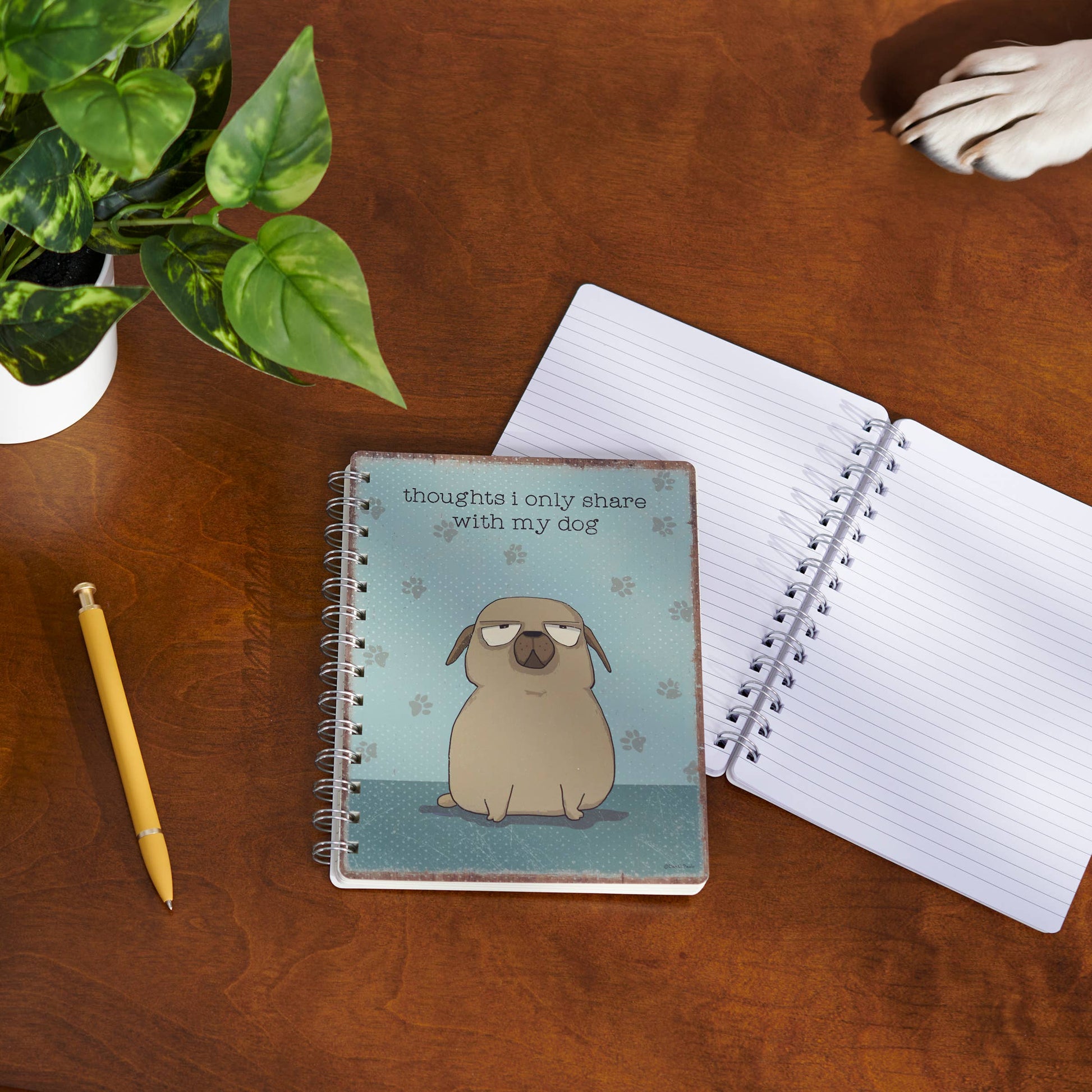 A double-sided spiral notebook from our Pet Collection displaying a rustic inspired design of a sassy dog with a humorous pet-themed sentiment that reads "Thought I Only Share With My Dog." Our spiral Dog notebook includes 120 lined pages. A fun pet-themed accessory that is also great for gifting.
