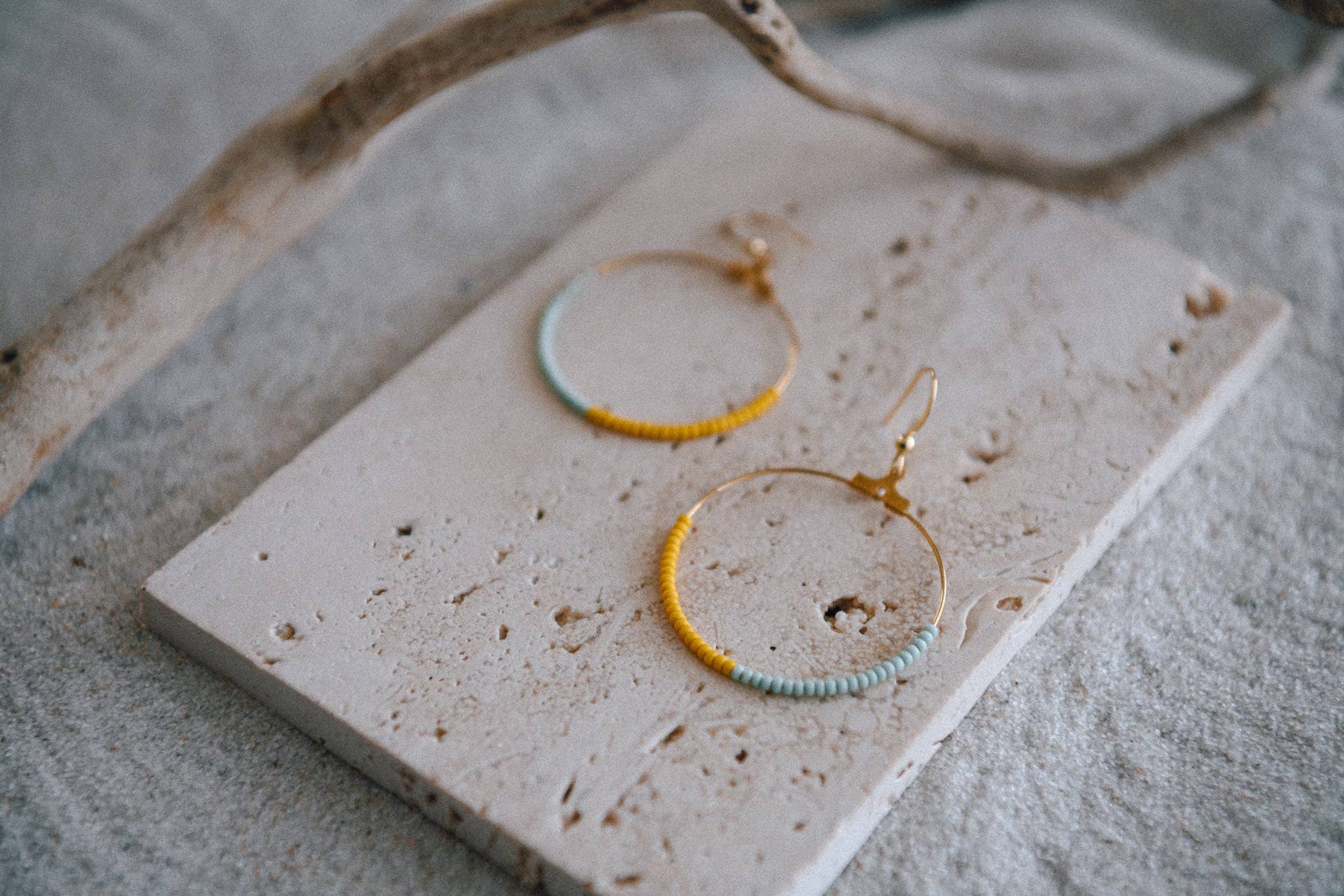 Whether you're heading to a festival, brunch, or a night out, these multi-colored hoops will brighten your day with their simple sophistication and joyful energy.