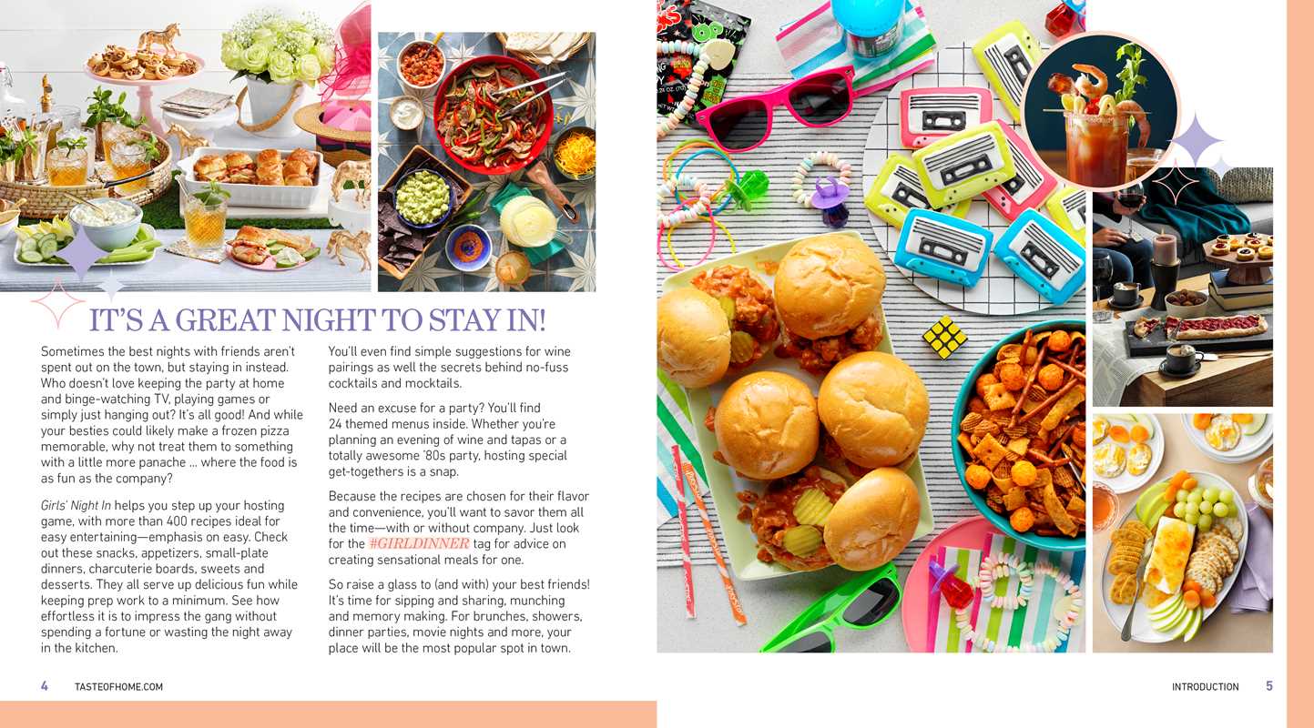 Let’s raise a glass to all the wonderful women we know — to nights spent together talking and laughing, sharing and supporting. To book clubs and red-carpet critiques, brunches and movie nights. Whenever a circle of best girlfriends gather it’s going to be a party, and Girls’ Night In is just what you need to turn your home into the memory-making source for fun you always wanted it to be. - 400+ Recipes: Includes appetizers, small plates, cocktails, salads, sliders, and desserts to make every gathering a hit. - Complete Party Plans: Features 15 meticulously planned themed gatherings with menus, tips, and hosting ideas.