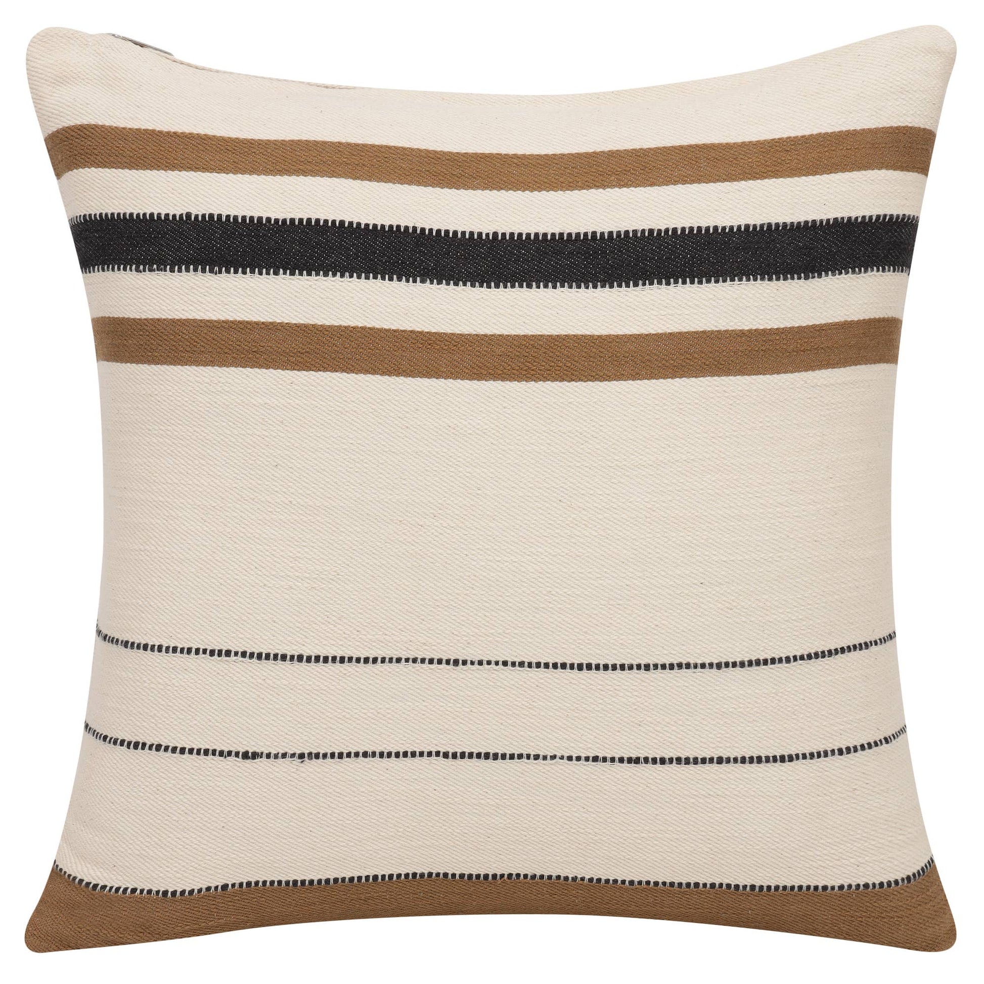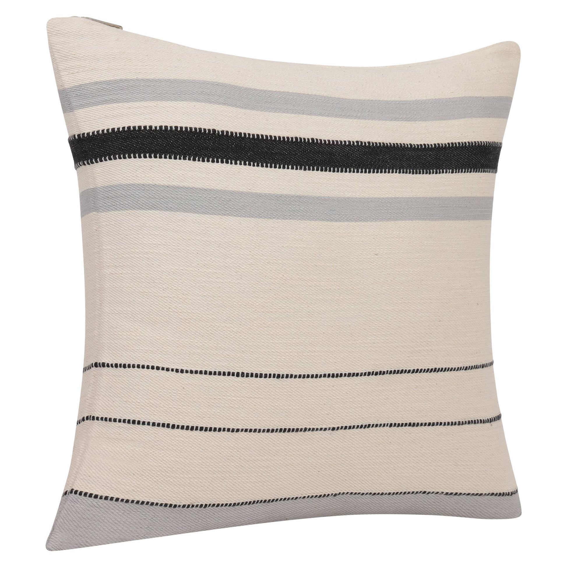 Indulge in comfort with this artisanal, decorative throw pillow collection. Meticulously handwoven in India using 100% cotton, it boasts a simple yet sophisticated striped pattern. The earthy tones evoke warmth and harmony, seamlessly blending into any decor. A concealed zipper ensures a refined appearance and easy maintenance. Crafted by expert craftsmen, this pillow offers superior comfort and is eco-friendly. Designed with a sturdy zipper wide enough to accommodate your pillow insert effortlessly, it's perfect for transitional, modern, contemporary, and casual-themed spaces. A