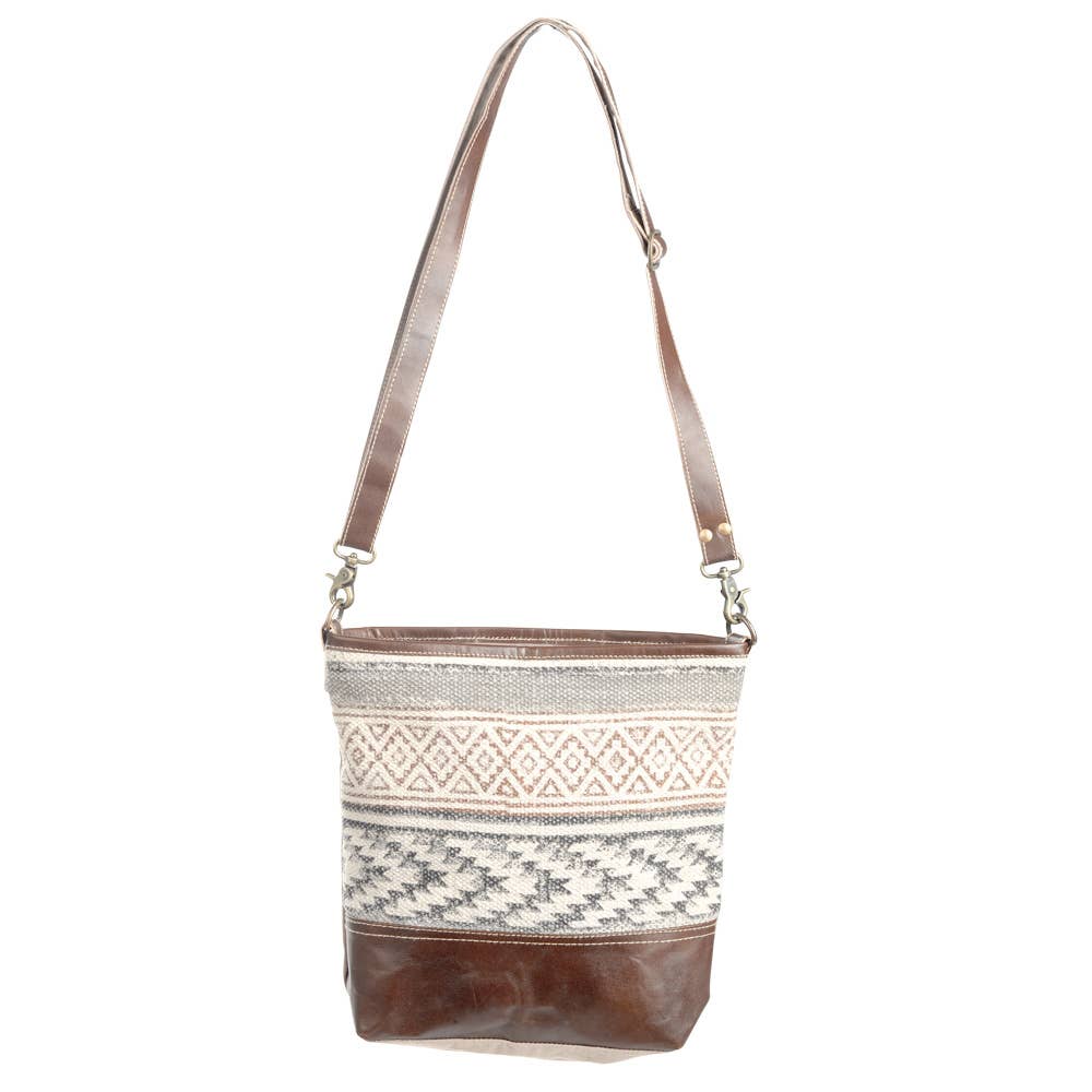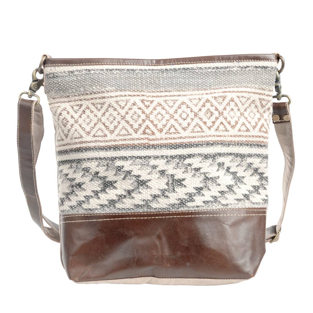 Vintage Tapestry Fabric With Leather Trim & Zipper Clousure